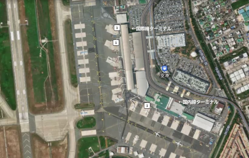 金海国際空港の国際線および国内線ターミナル
