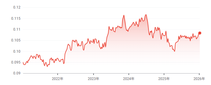 韓国の通貨は「ウォン」で、2025年12月23日現在、1ウォン=0.11円となっています。直近5か年では、1ウォン=0.09~0.12円の範囲で推移しています。