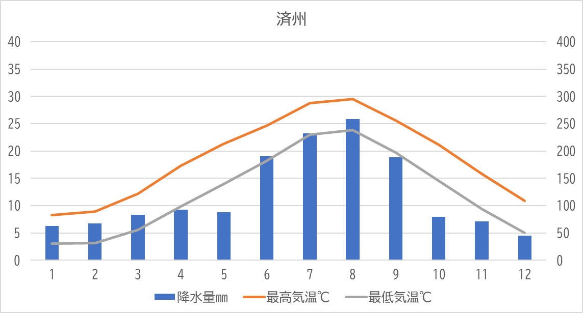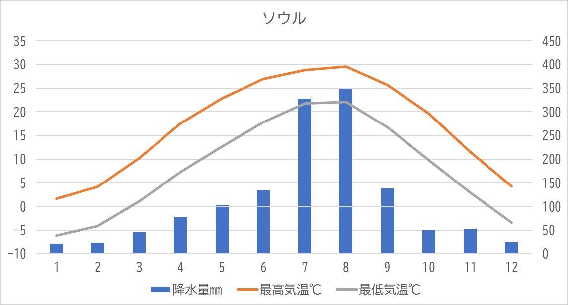 国土のほとんどが温帯に属しており、四季がはっきりしていて夏冬の寒暖差が大きいです。春と秋は穏やかで過ごしやすいですが、夏は高温多湿で梅雨があり、冬は厳しく乾燥します。